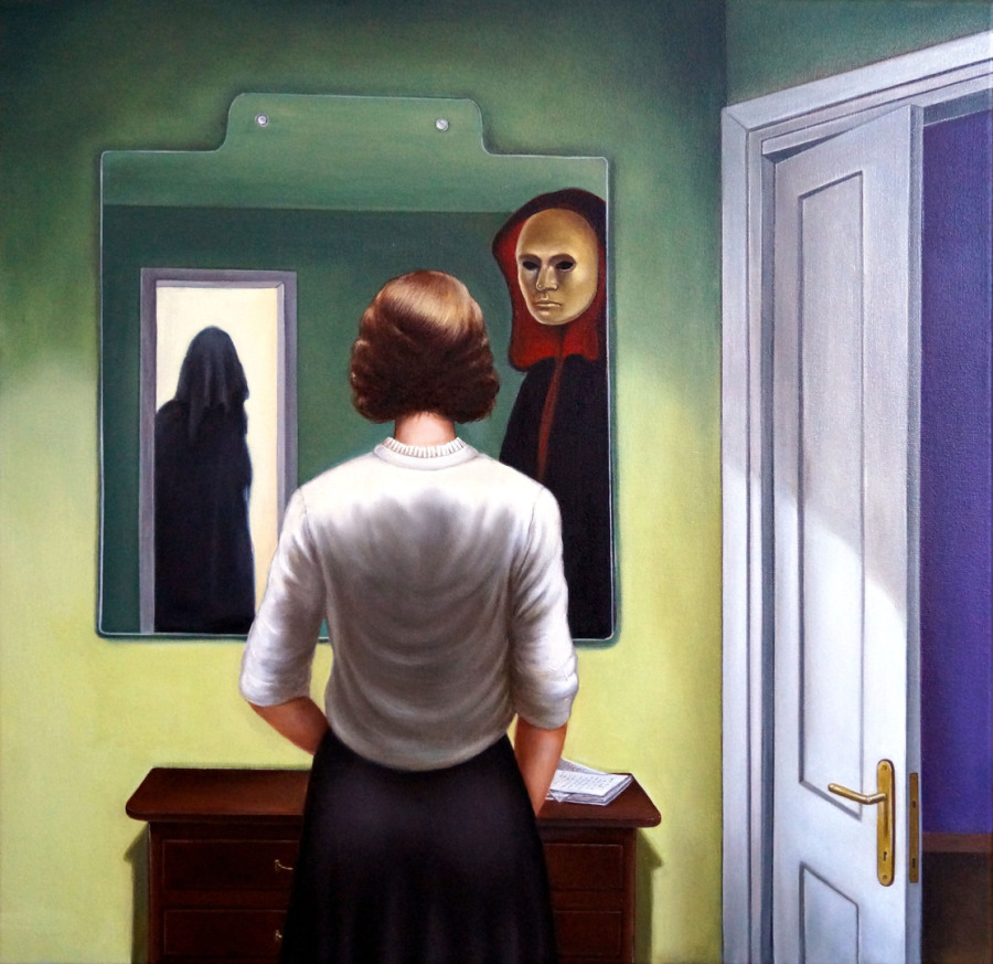 Geister im Spiegel, 2025, Öl auf Leinwand, 60 x 60 cm